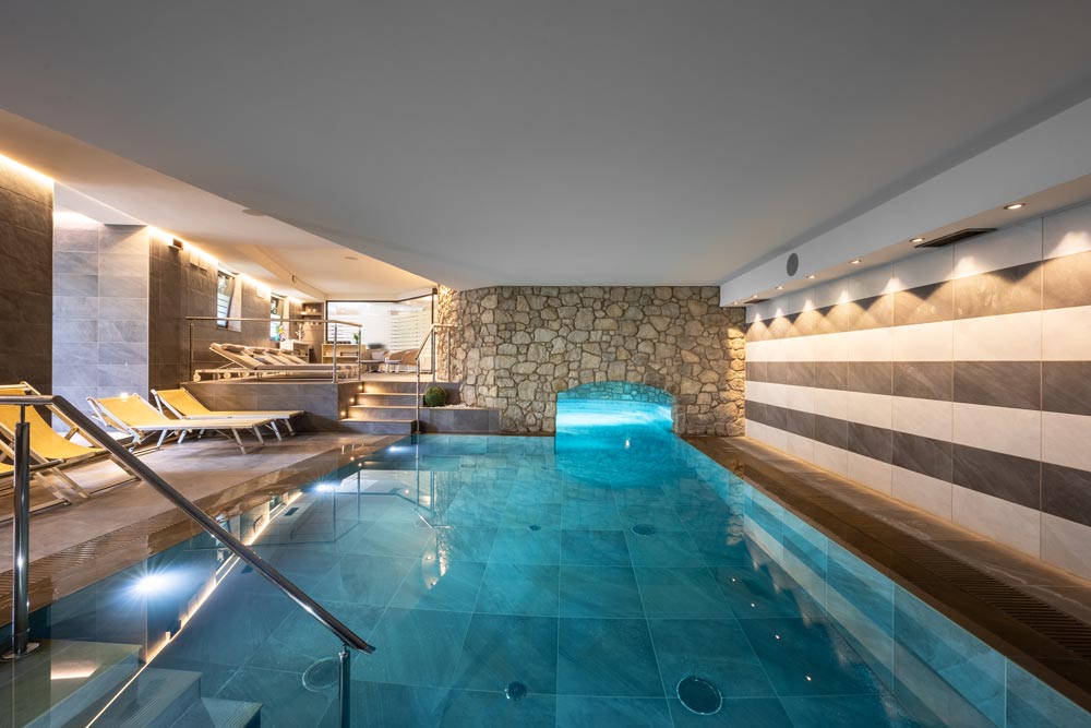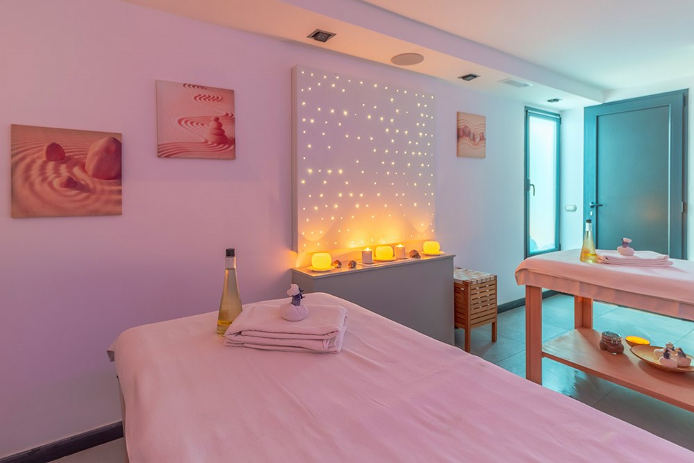 Relié par ascenseur au bâtiment principal, il comprend: une SALLE DE SPORT, équipée de 12 appareils Technogym, ouverte de 8h00 à 20h00, et un SPA avec piscine intérieure d’eau salée chauffée et grotte d’hydromassage, douche émotionnelle et brume froide aromatisée, cascade de glace, sauna finlandais et hammam, accessible de 14h00 à 20h00 sur réservation, avec un parcours bien-être d’1h (plus flexible en semaine lorsque possible).