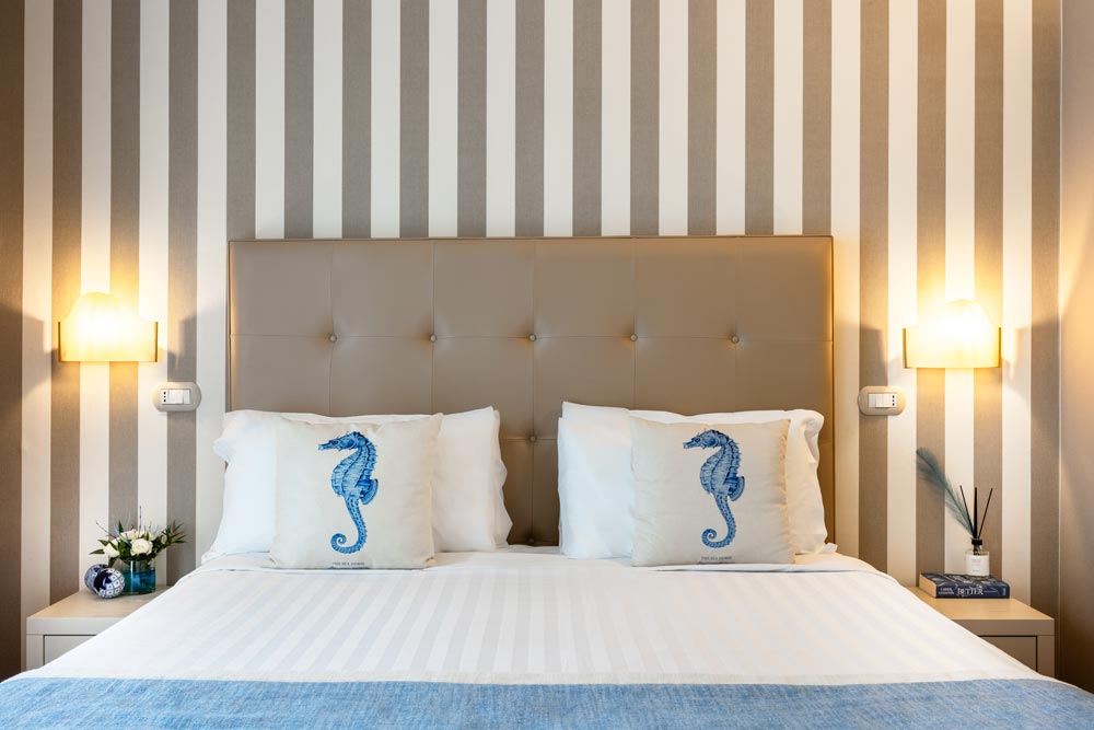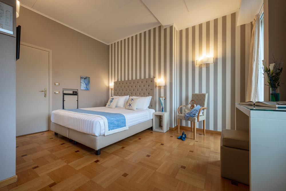 les chambres standard, de 14/16 m², sont situées sur le côté donnant sur le jardin/mer ou sur la colline ou donnant directement sur le parc de l'hôtel.