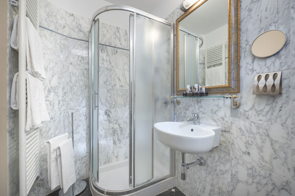 et le travertin de l'entrée rappellent l'atmosphère du XIXe siècle, en bénéficiant cependant de tout le confort moderne dans le bâtiment principal.