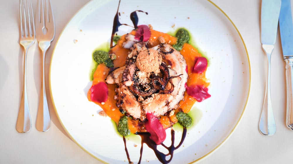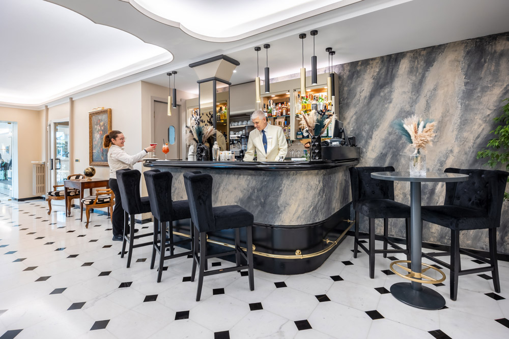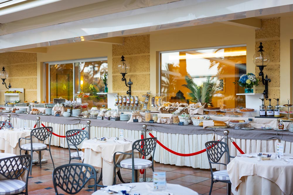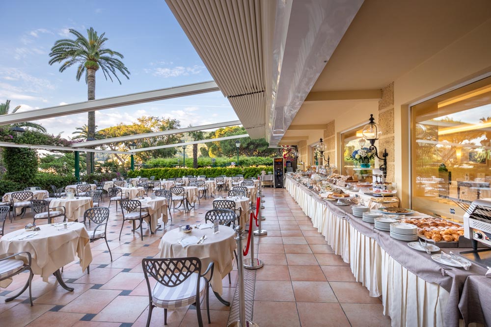 Nos deux restaurants, celui dans l’hôtel qui donne sur le jardin et celui panoramique d’été à la plage qui donne sur la mer,