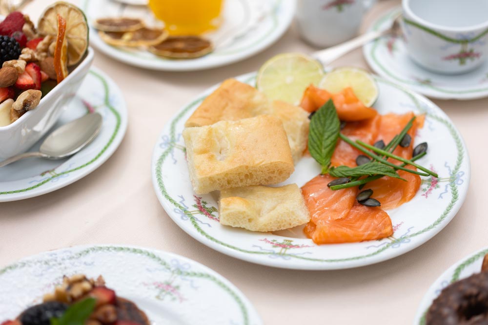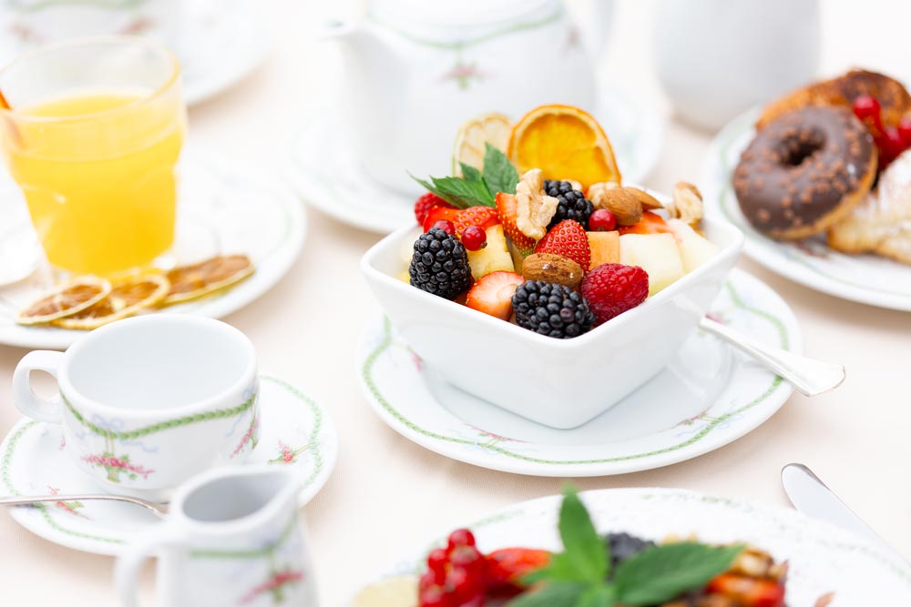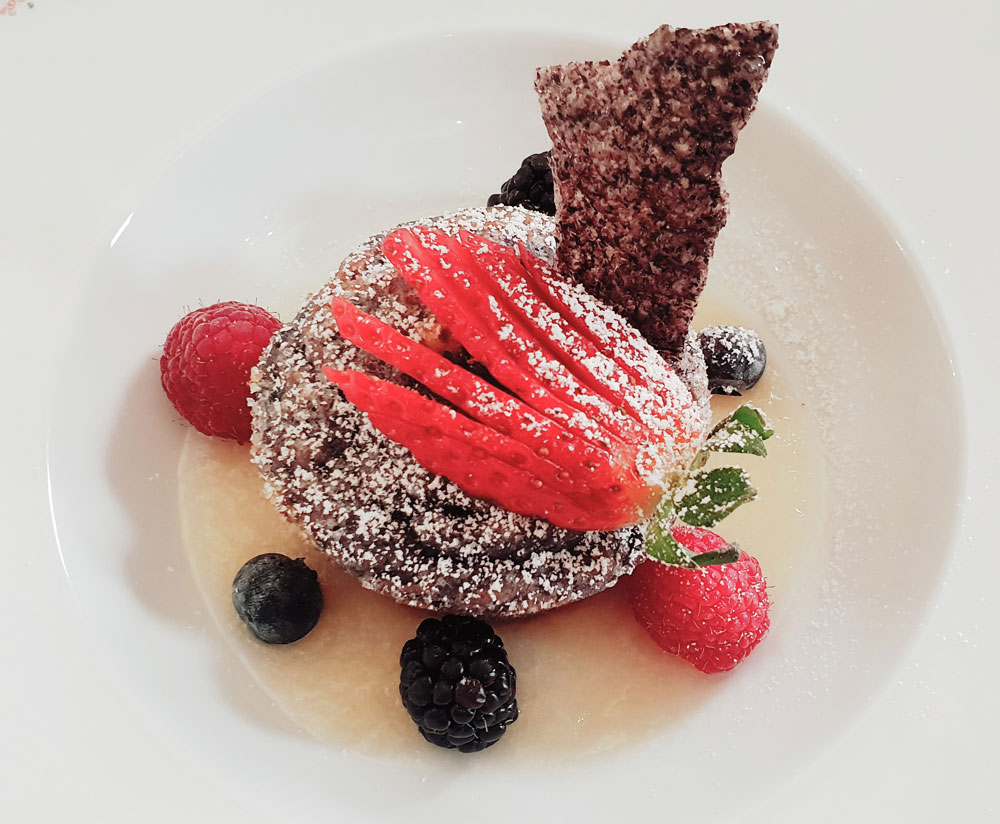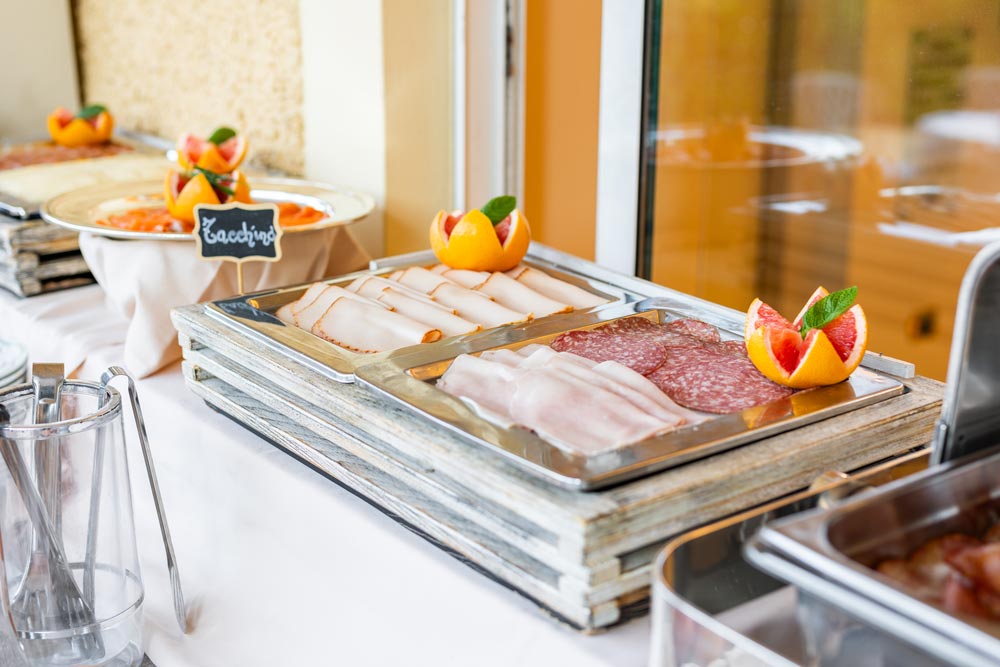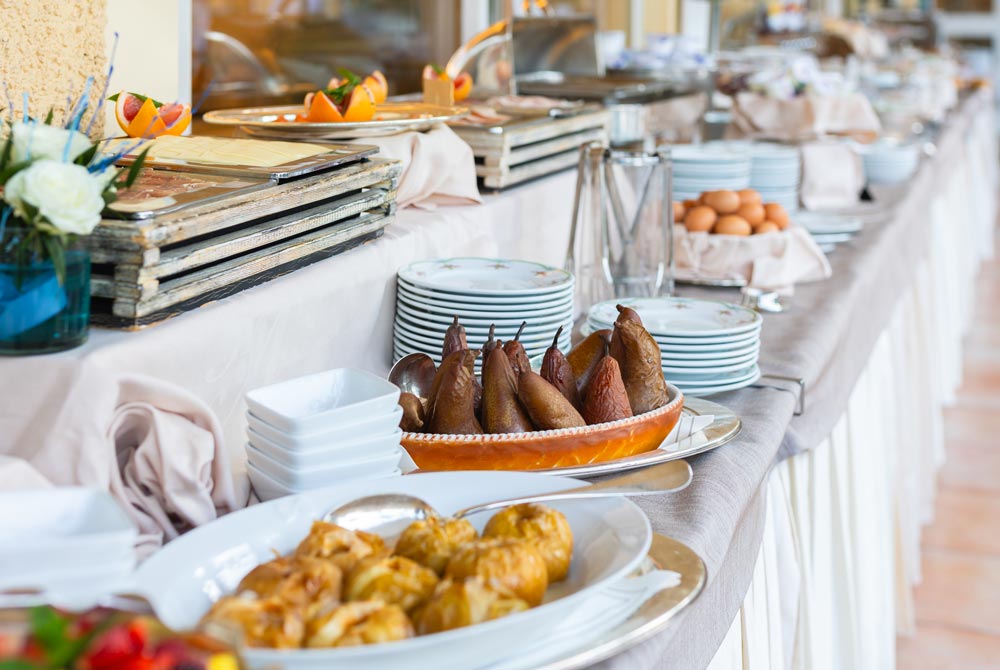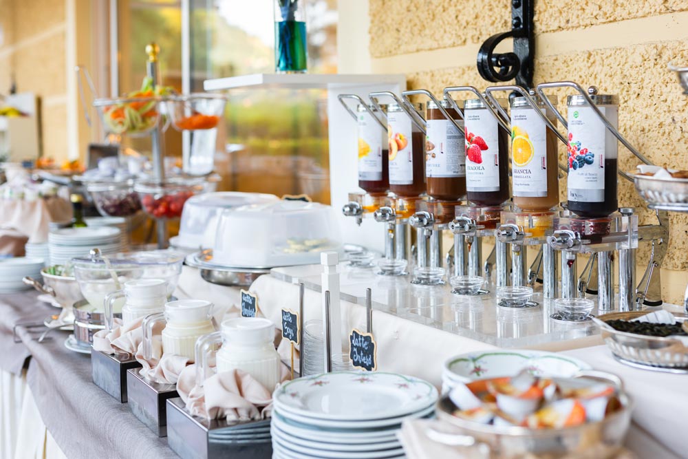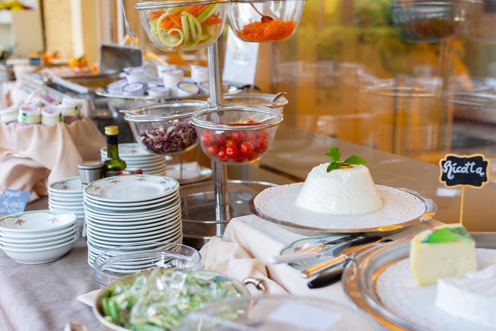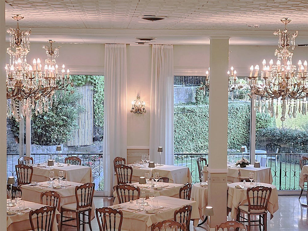 De juin à fin septembre, la demi-pension comprend le dîner au restaurant de l'hôtel, servi sur la terrasse extérieure donnant sur le parc.